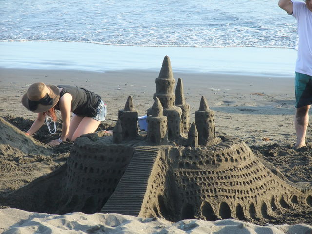 外では砂のお城が作成されていました。芸術だーーーすごい。